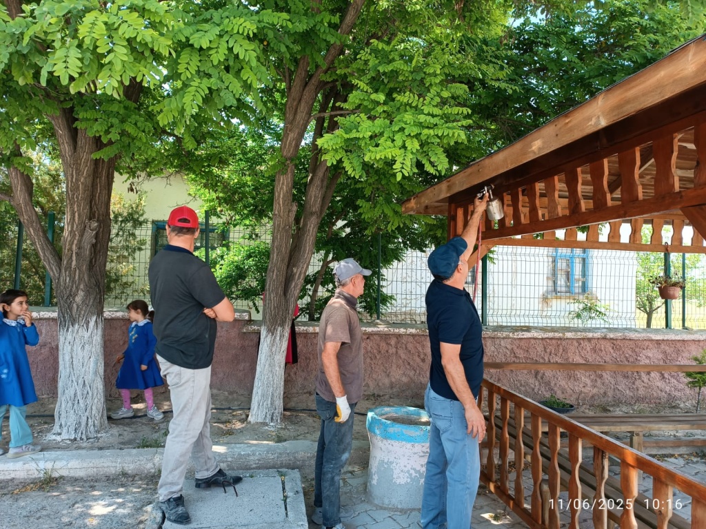 Okul çevresi düzenleme çalışmaları kapsamında kamelya için boya temin edilip bakımı yapıldıktan sonra boyandı ve yenilendi.